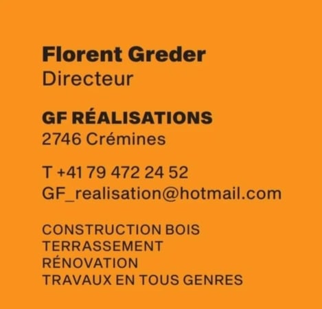 Faire confiance à Greder Fils – GF Réalisations, c'est choisir une entreprise locale à Crémines, reconnue pour sa rigueur, sa fiabilité et sa proximité avec ses clients. Nous concrétisons vos projets avec professionnalisme et passion.